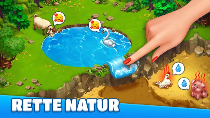 Begeben Sie sich auf Entdeckungsreisen zu fernen Inseln und durchqueren Sie dichte Dschungel, wo wilde Tiere Ihren Weg kreuzen. Besuchen Sie pulsierende Piratenstädte und stimmen Sie fröhliche Lieder mit Seeleuten an. Überlisten Sie gerissene Diebe, um längst verlorene Schätze zu bergen – all das, ohne Ihr gemütliches Zuhause verlassen zu müssen! Gleichzeitig managen Sie Ihre eigene Familienfarm: säen Sie Getreide, pflanzen Sie farbenprächtige Blumen und stellen Sie sicher, dass Ihre Tiere satt und zufrieden sind. Das Farming-Erlebnis in Adventure Bay: Paradiesfarm war noch nie so fesselnd und bietet die perfekte tropische Auszeit, wenn Sie dem Stadtleben entfliehen möchten.