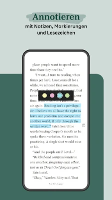 Nie mehr den Lesefluss unterbrechen: Die Kobo Lese-App sorgt dafür, dass Sie immer genau dort weitermachen, wo Sie aufgehört haben. Lesezeichen, Notizen und Markierungen werden automatisch über alle Ihre Geräte hinweg synchronisiert. Teilen Sie Ihre Begeisterung für Gelesenes, posten Sie inspirierende Zitate oder Ihre persönlichen Gedanken direkt aus der Kobo Lese-App auf Social Media und treten Sie in den Austausch mit anderen Buchliebhabern. Bewerten und rezensieren Sie Ihre Lektüre oder lassen Sie sich von den Meinungen der Community inspirieren.