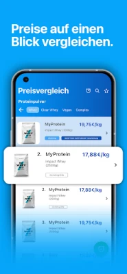 Mit der DROPTIME - Supplement App behältst du den Überblick über ESN & Co. Finde Produktinfos, Bewertungen und Preisvergleiche. Bleibe stets über neue Produkte und Aktionen informiert. Sichere dir die besten Supplement-Deals von Top-Marken wie ESN, MyProtein und More Nutrition direkt auf dein Smartphone. Spare clever und verpasse nie wieder ein Schnäppchen.