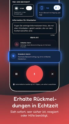 In kritischen Momenten zählt jede Sekunde und die Gewissheit, wer handlungsbereit ist. Diese innovative Lösung transformiert Ihr Notfallmanagement, indem sie Ihren Teams die Möglichkeit gibt, ihren Status in Echtzeit zu übermitteln – sei es "auf dem Weg" oder "aktuell nicht verfügbar". So haben Sie stets den präzisen Überblick über die Einsatzbereitschaft Ihrer Belegschaft und können Ressourcen optimal koordinieren.
