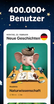 Tauchen Sie ein in eine Welt voller Klang und Fantasie mit Readmio, der innovativen App, die das Vorlesen für die ganze Familie neu definiert. Entwickelt von Eltern für Eltern, verwandelt Readmio jede Geschichte in ein fesselndes Hörerlebnis. Während Sie laut vorlesen, lauscht die App aufmerksam und untermalt die Erzählung präzise mit passenden Geräuschen und Melodien. So entsteht ein kleines Heimkino direkt in Ihrem Wohnzimmer, das die Aufmerksamkeit Ihrer Kinder auf Sie, die Geschichte und die wundervollen Klänge lenkt, fernab von digitalen Ablenkungen auf dem Bildschirm. Es ist eine mühelose Art, eine tiefe Bindung zum Lesen zu schaffen und gemeinsame magische Momente zu erleben.
