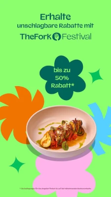 Entdecken Sie TheFork Festival! Profitieren Sie von 50% Rabatt auf köstliche Restaurantreservierungen. Dieses kulinarische Gastroevent der Saison findet vom 12. Oktober bis 26. November 2023 statt. Erleben Sie Genussmomente bei teilnehmenden Restaurants.