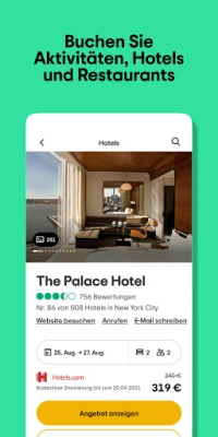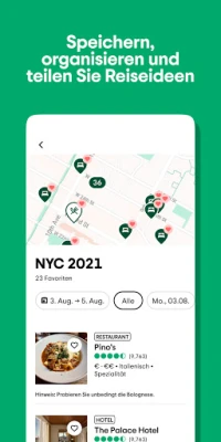 Mit Tripadvisor wird die Reiseplanung zum Vergnügen. Organisieren Sie Ihre gesamten Unternehmungen an einem zentralen Ort und profitieren Sie von der Möglichkeit, Hotels, Touren und Aktivitäten direkt zu buchen – oft mit flexiblen Stornierungsoptionen für Ihre Sicherheit. Vergleichen Sie Hotelpreise von über 200 Anbietern weltweit, um stets das beste Angebot zu finden, und reservieren Sie Tische in den besten Restaurants, ganz nach Ihrem Geschmack. Unser intuitives Planungstool ermöglicht es Ihnen, empfohlene Orte zu speichern, Reiserouten zu erstellen, Favoriten auf einer Karte darzustellen und diese Ideen nahtlos mit Mitreisenden zu teilen.